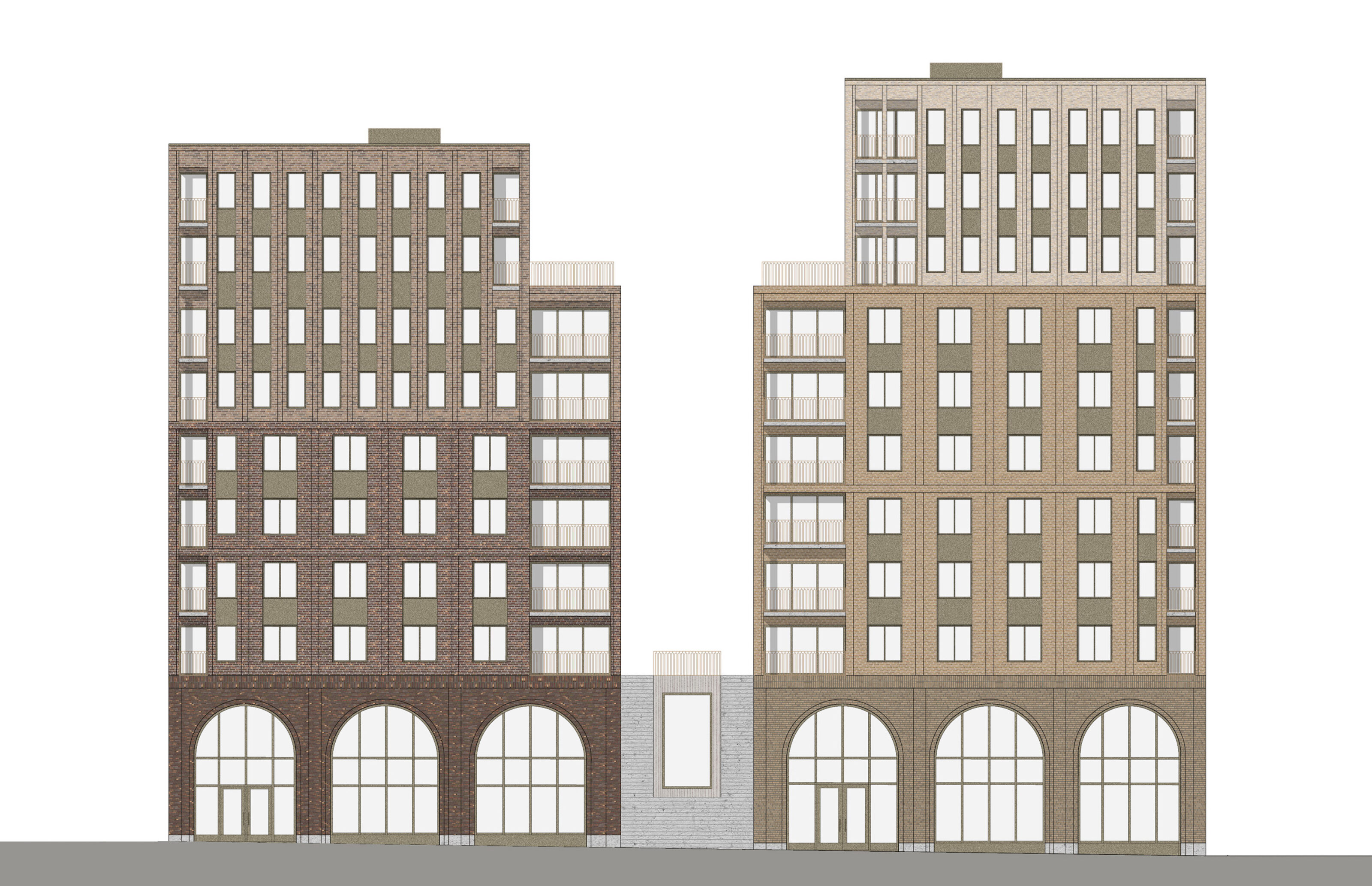 The facades strive to define clear edges to the public urban spaces. The concept is a contemporary interpretation of the 19th century urban typology and the adjacent listed industrial buildings. The facades are articulated in brick of various shades, carefully coordinated to create beautiful patterns and vivid interplay of light and shadows. The volumes are formed vertically by a strong base, a middle part, and an articulated crown; classic composition making the scheme into a natural component of the area and a new “growth ring” in Hagastaden.