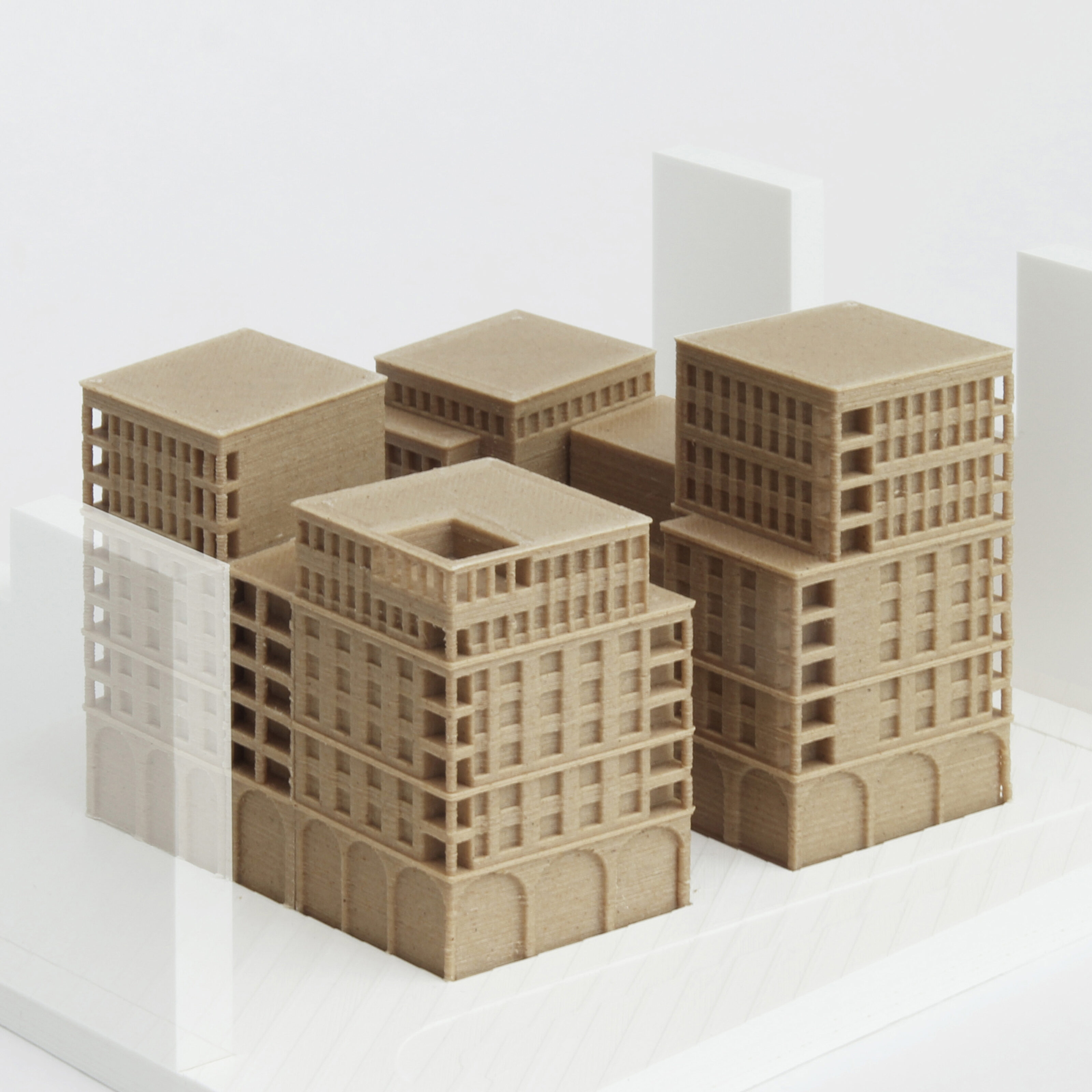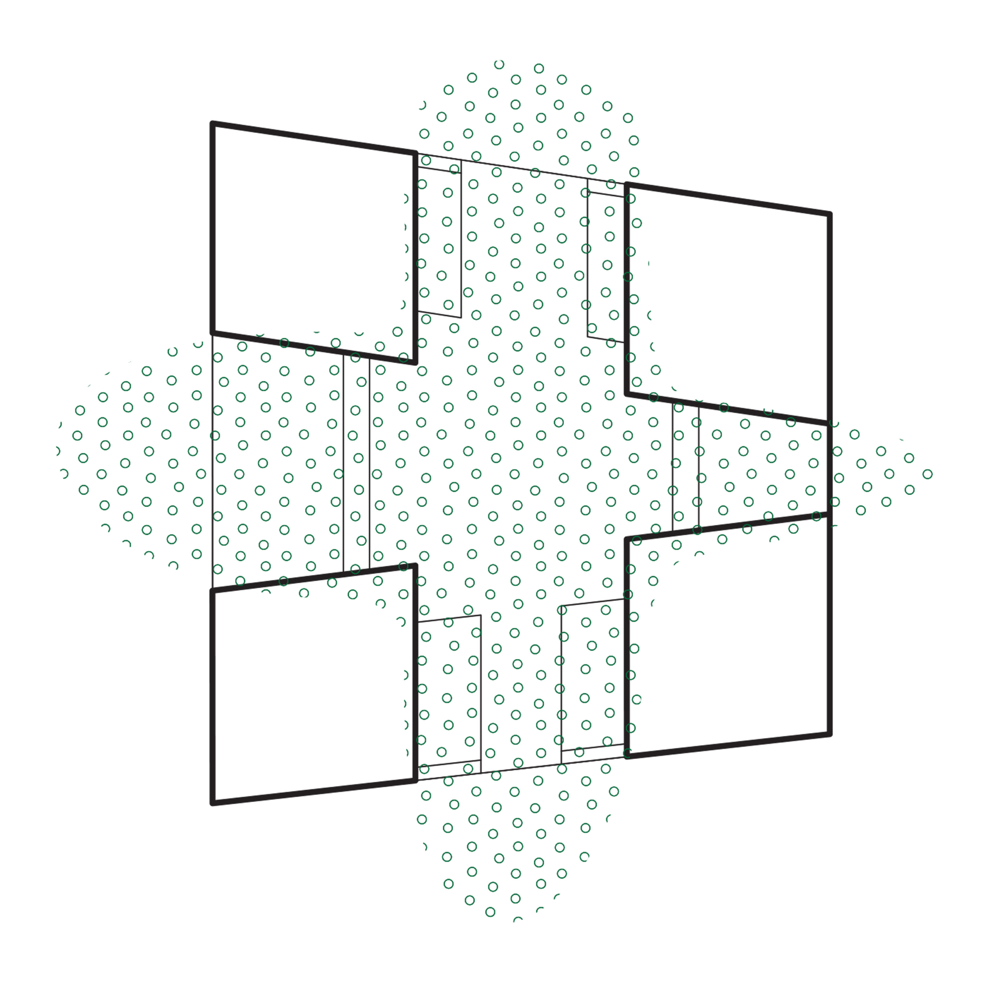 The footprint of the block is shaped like an asymmetric trapezium with towers in each corner and lower interconnecting buildings in between. The concept is based on a subdivision created by two perpendicular axes which delineate main pathways and a green inner courtyard at their intersection. Access to the courtyard, the two adjacent parks as well as neighbouring blocks is rendered easy. The strong connection to the green open space and locating retail on the ground floor provide proximity to recreation and nature in combination with active urban life.