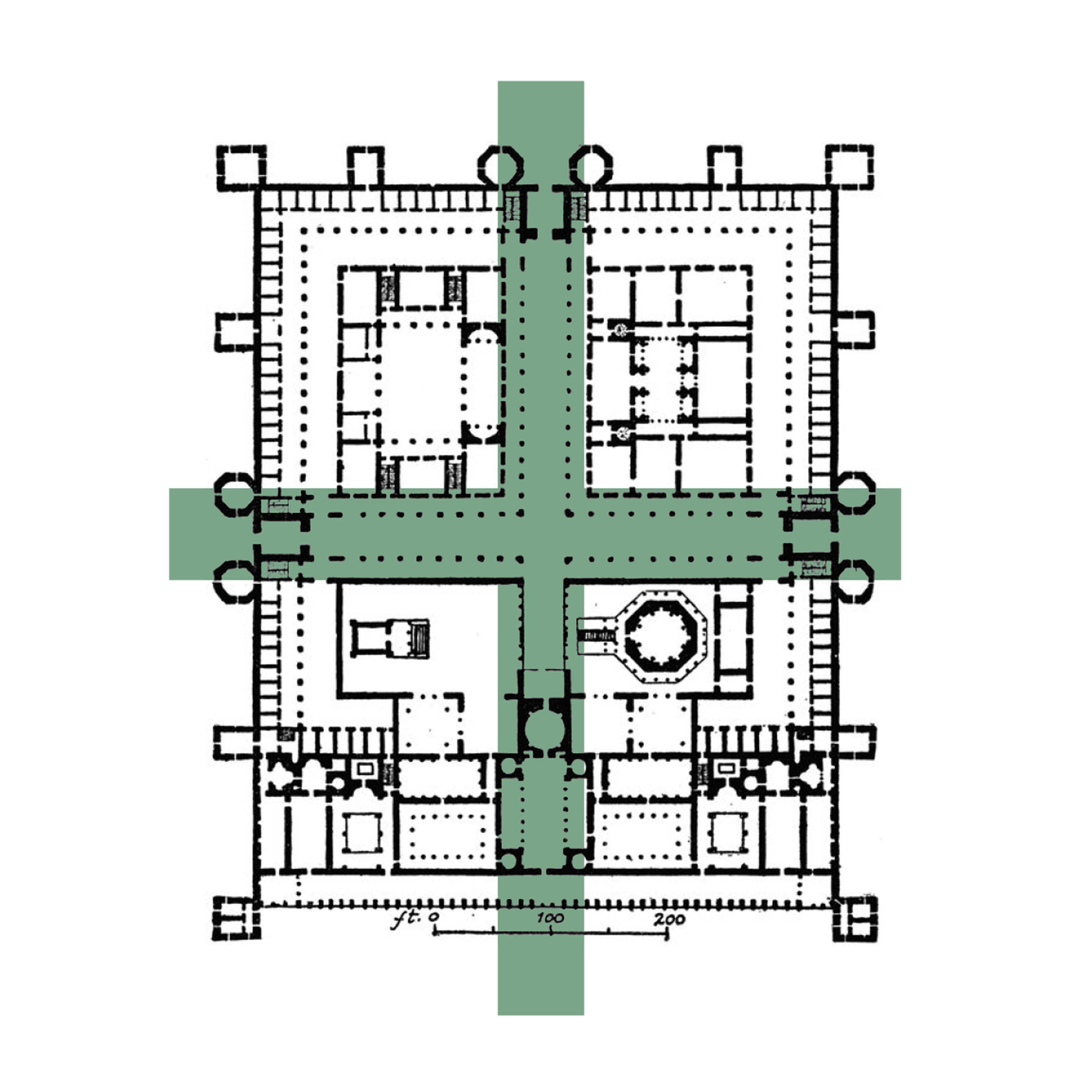 The layout is based on a classical urban typology dating back to Ancient Rome, defined by two intersecting axes. Applying such composition to Ribosomen has resulted in uninterrupted sightlines and strong movement flows, opening the block towards the surrounding urban fabric and generating new qualities.