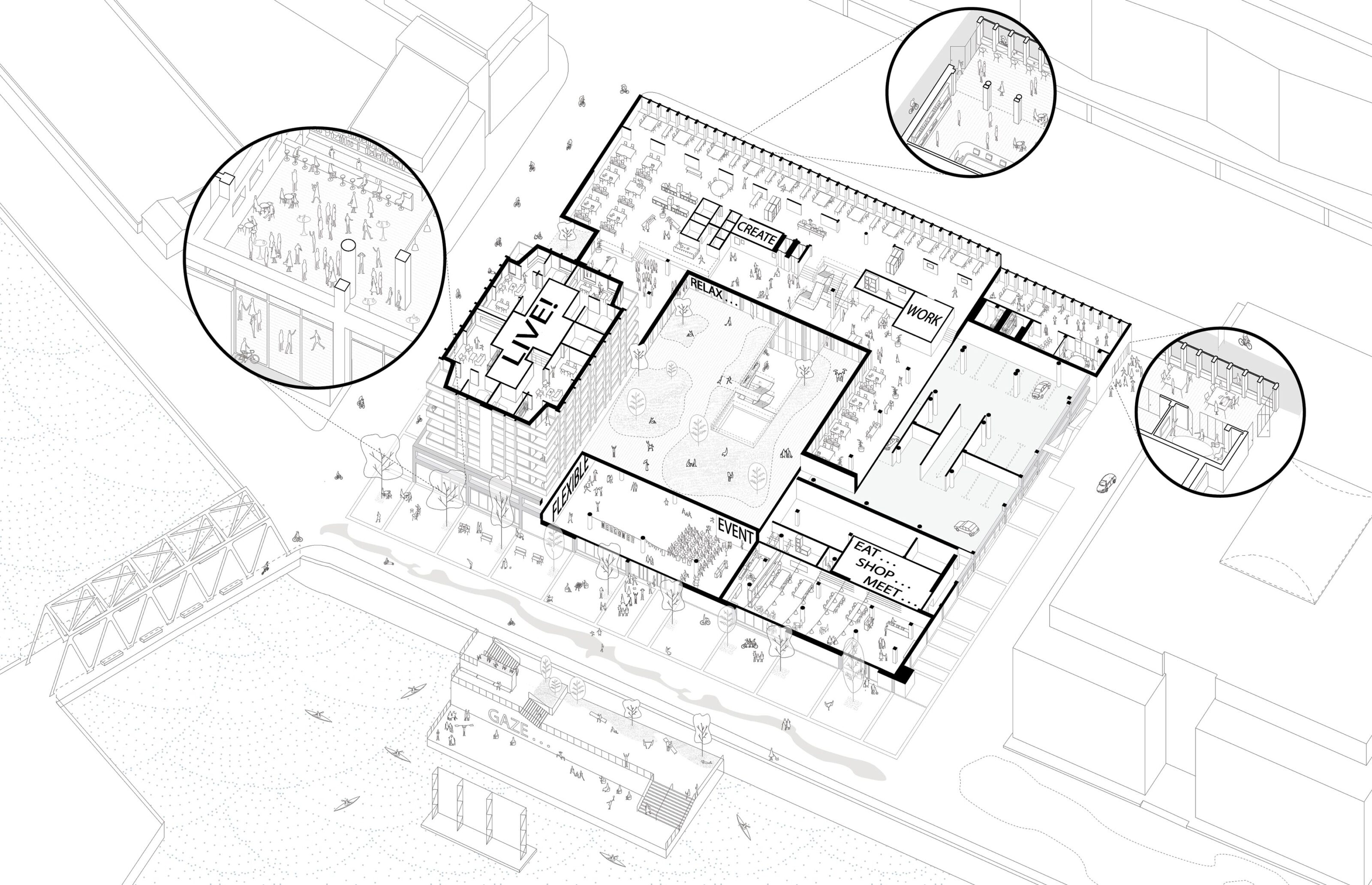 The proposal was judged as the most convincing in combining the site’s cultural-historical values with contemporary urban development. The competition proposal is described in more detail below (2024).