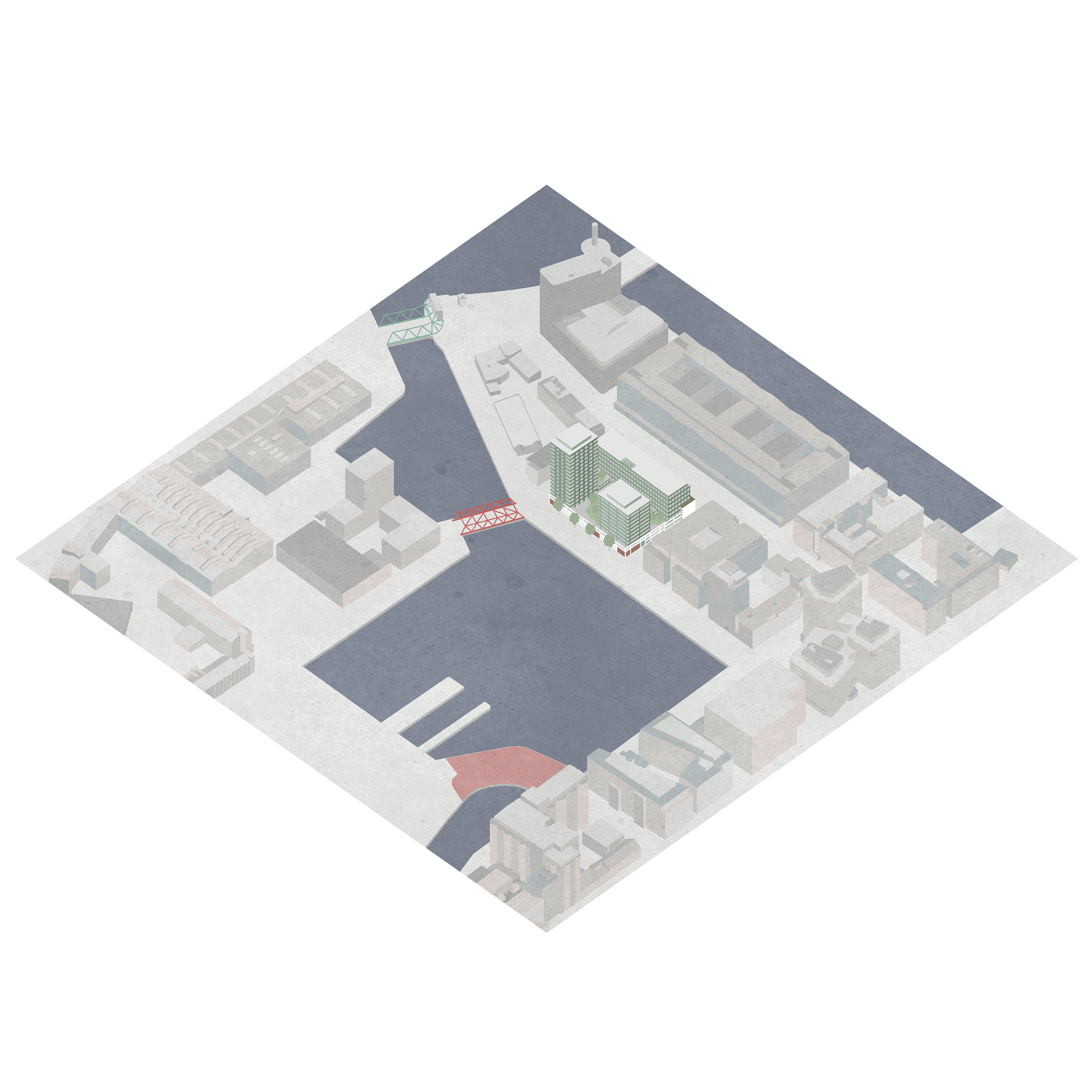 Development and design of the Trollhättan 6 city block into a mixed-use urban quarter at Beijerskajen on Universitetsholmen in Malmö, Sweden. The scheme proposes a hybrid architecture that combines workplaces, housing and services, while the ground floor contributes to vibrant urban life along the quay and in the surrounding streets.
