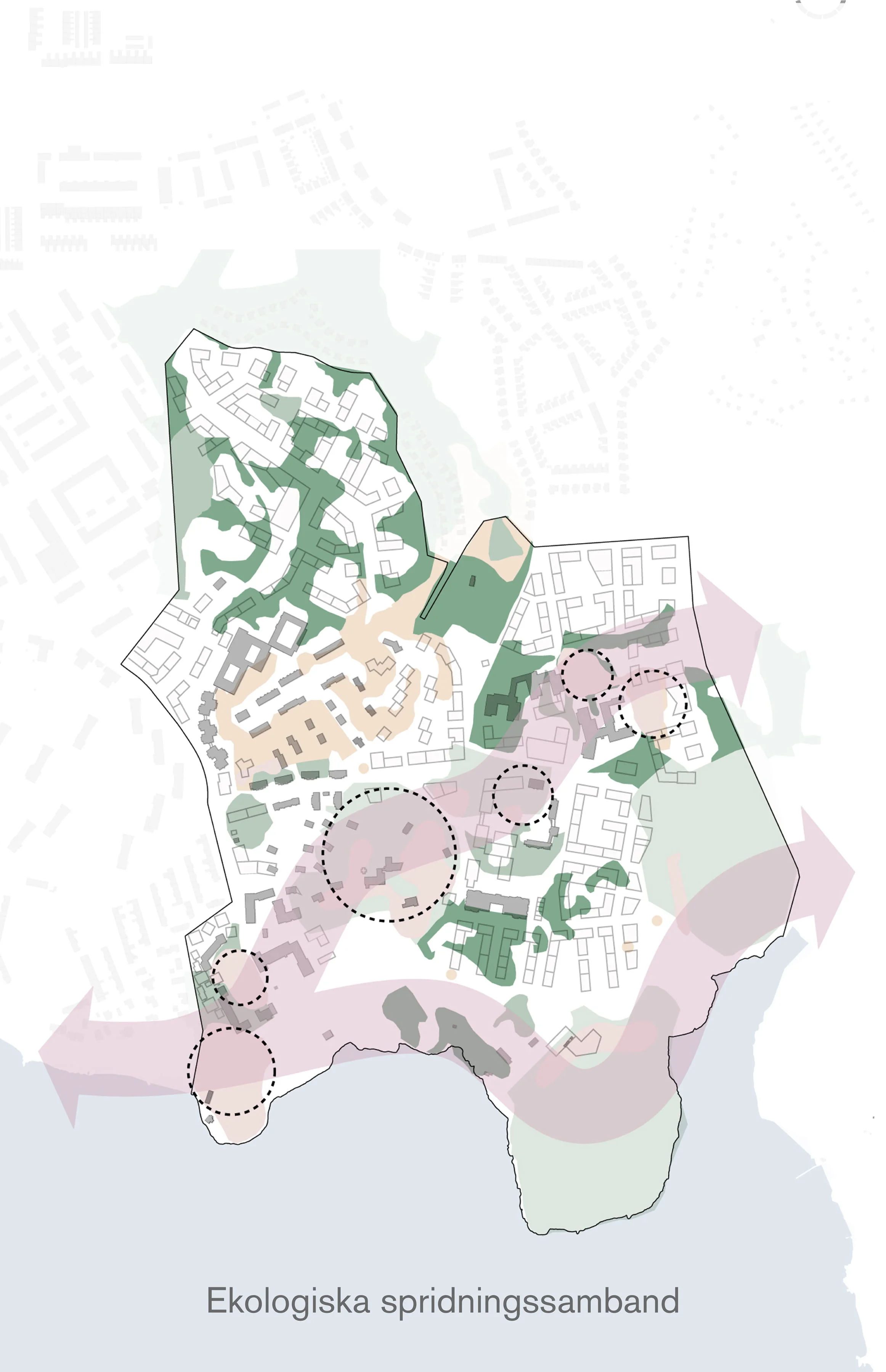 En ny stadsdel i samklang med natur- och kulturvärden. Varierade delområden med egen karaktär ges individuella kvarterstypologier, som vävs samman till en rik stadsmiljö.